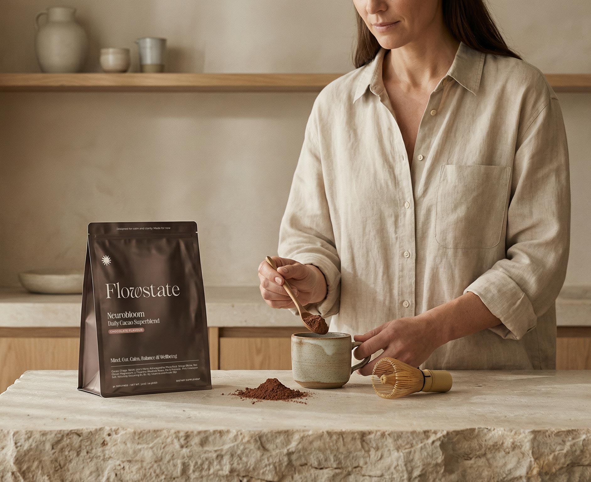 Flowstate is a comprehensive, science-backed blend where every ingredient is chosen with the highest standards in mind, not only to deliver benefits on its own, but to synergize with the others for maximum effectiveness and a smooth, enjoyable taste.